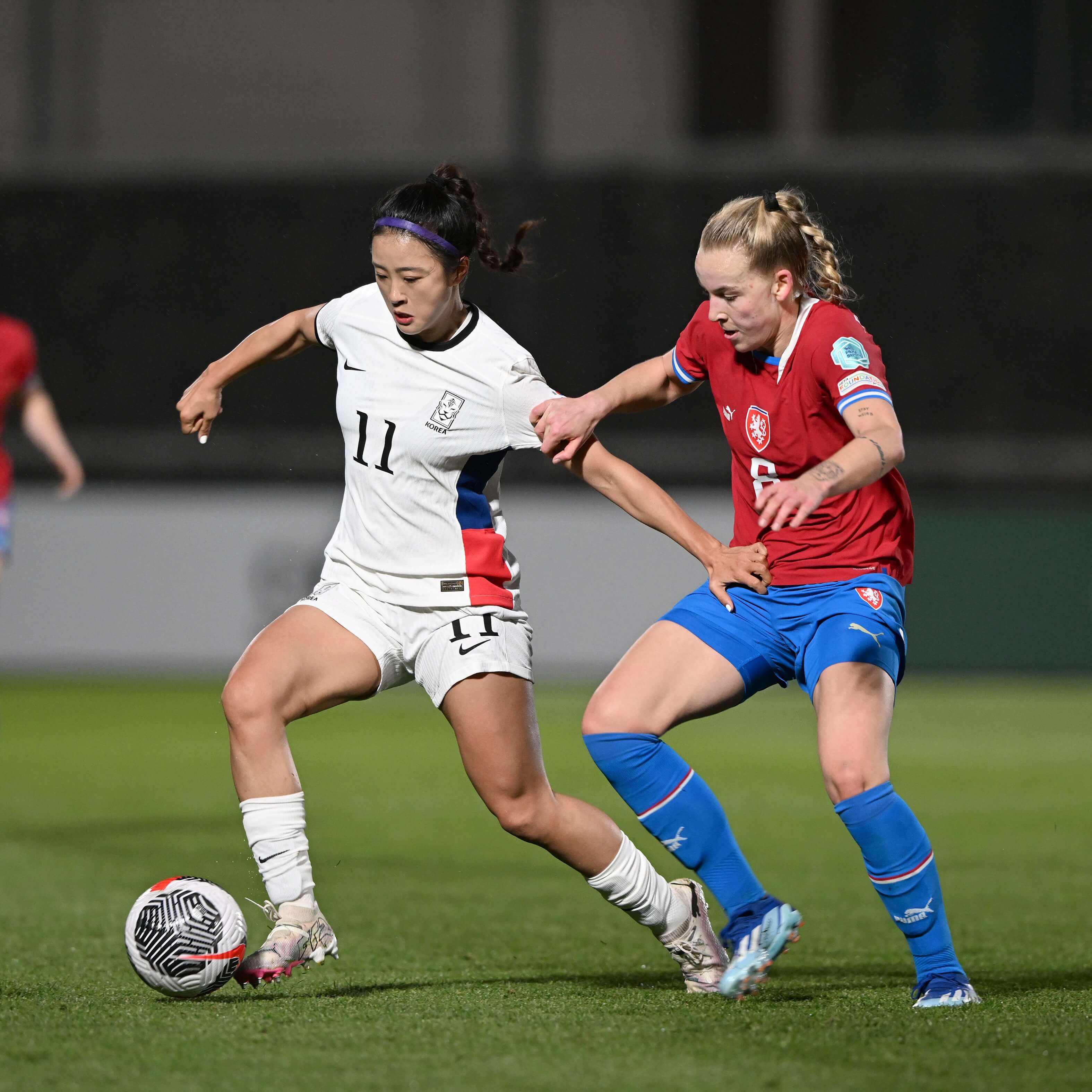 대한민국 여자축구 국가대표팀의 친선경기가 진행되고 있습니다.