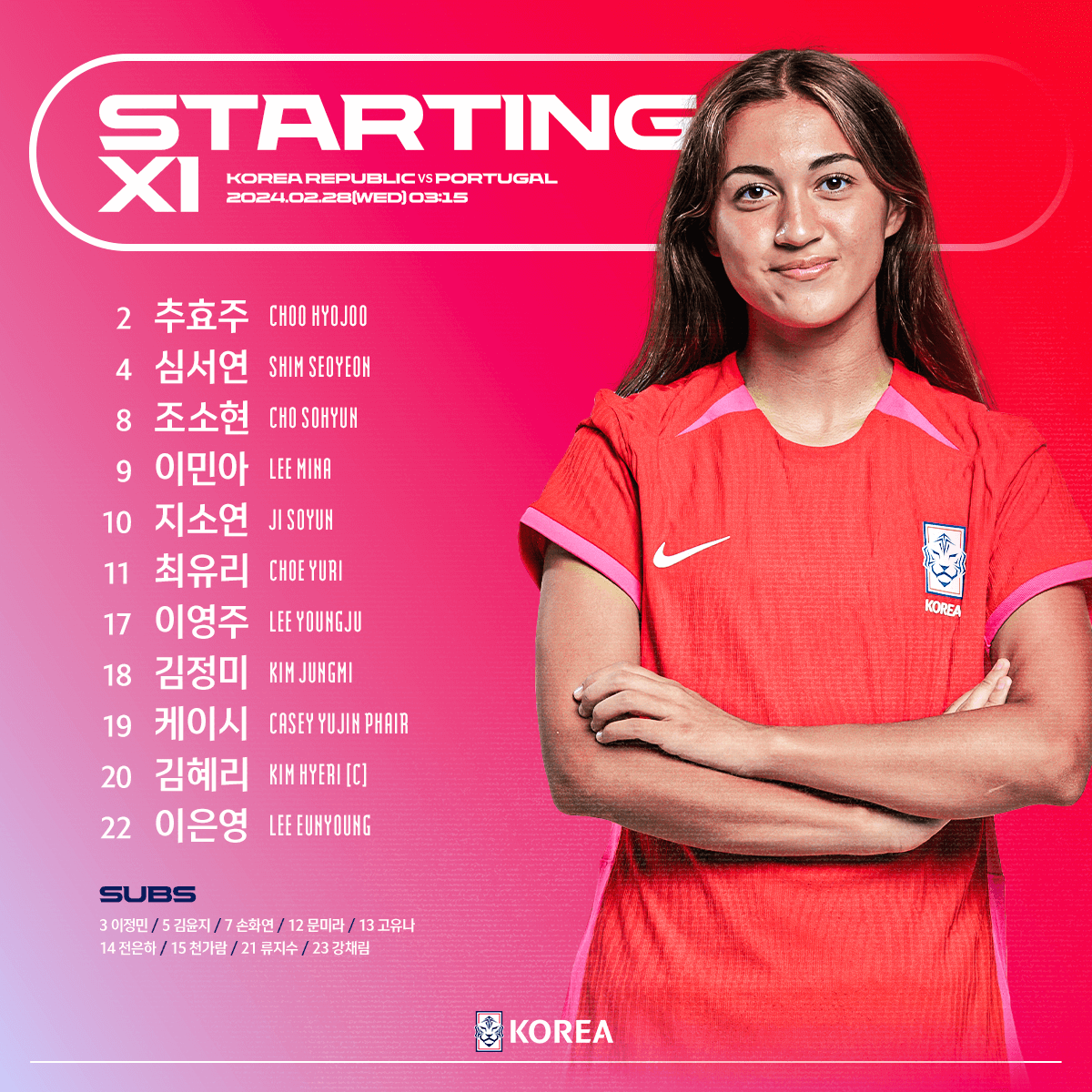최유리(후반 28분) 선수의 선제골에 이어 지소연(후반 31분), 장슬기(후반 43분) 선수들이 골을 넣으며