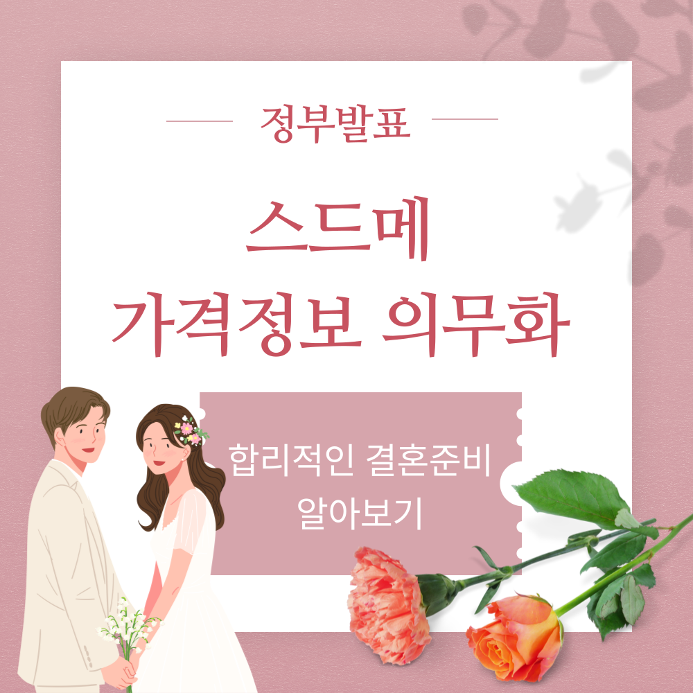 정부가 결혼서비스업 스드메(스튜디오, 드레스, 메이크업) 가격 표시 제도를 올해말 도입한다고 발표했습니다.