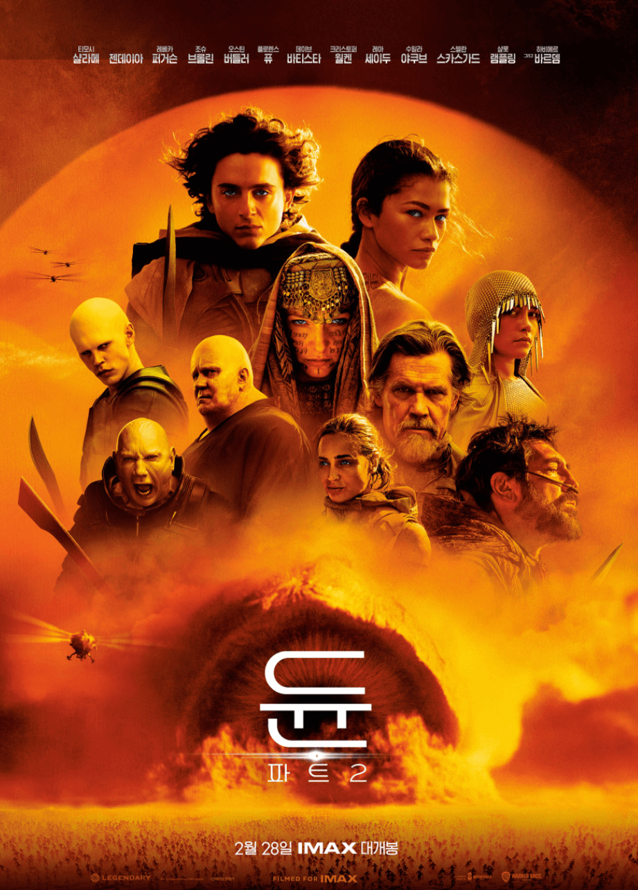 영화 듄 파트2가 2024년 2월 28일 개봉하며, 주인공 티모시 샬라메와 젠데이아가 내한하였습니다.
