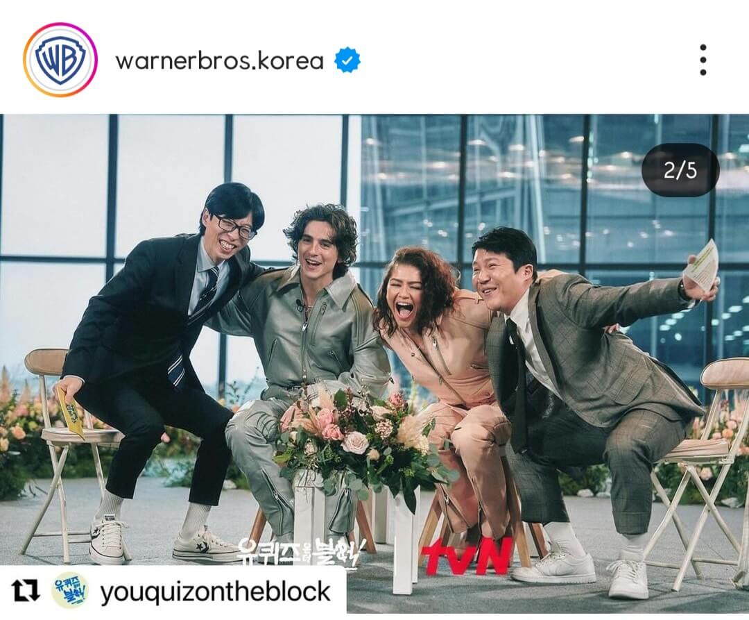 티모시 샬라메와 젠데이아 콜먼은 한국의 인기 프로그램인 tvN '유퀴즈 온 더블럭'에 출연한 소식이 알려져 더욱 관심을 받고 있습니다.