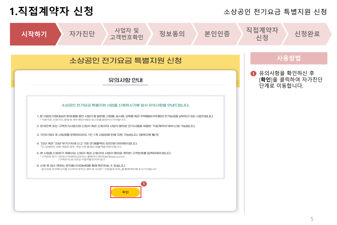 직접계약자 신청 시 유의사항 확인